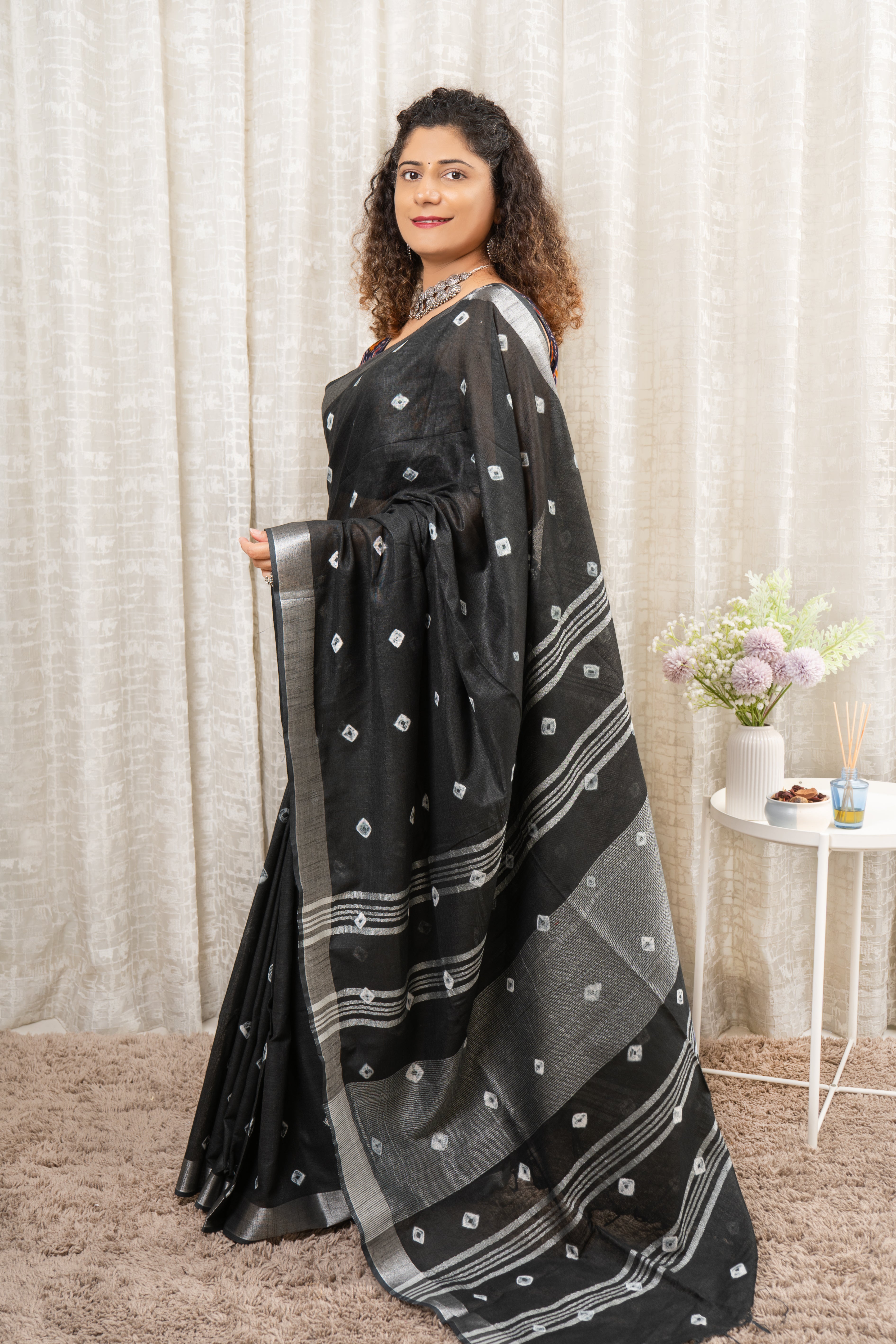 Black sarees from different Indian weaves, curated to celebrate tradition with quiet elegance