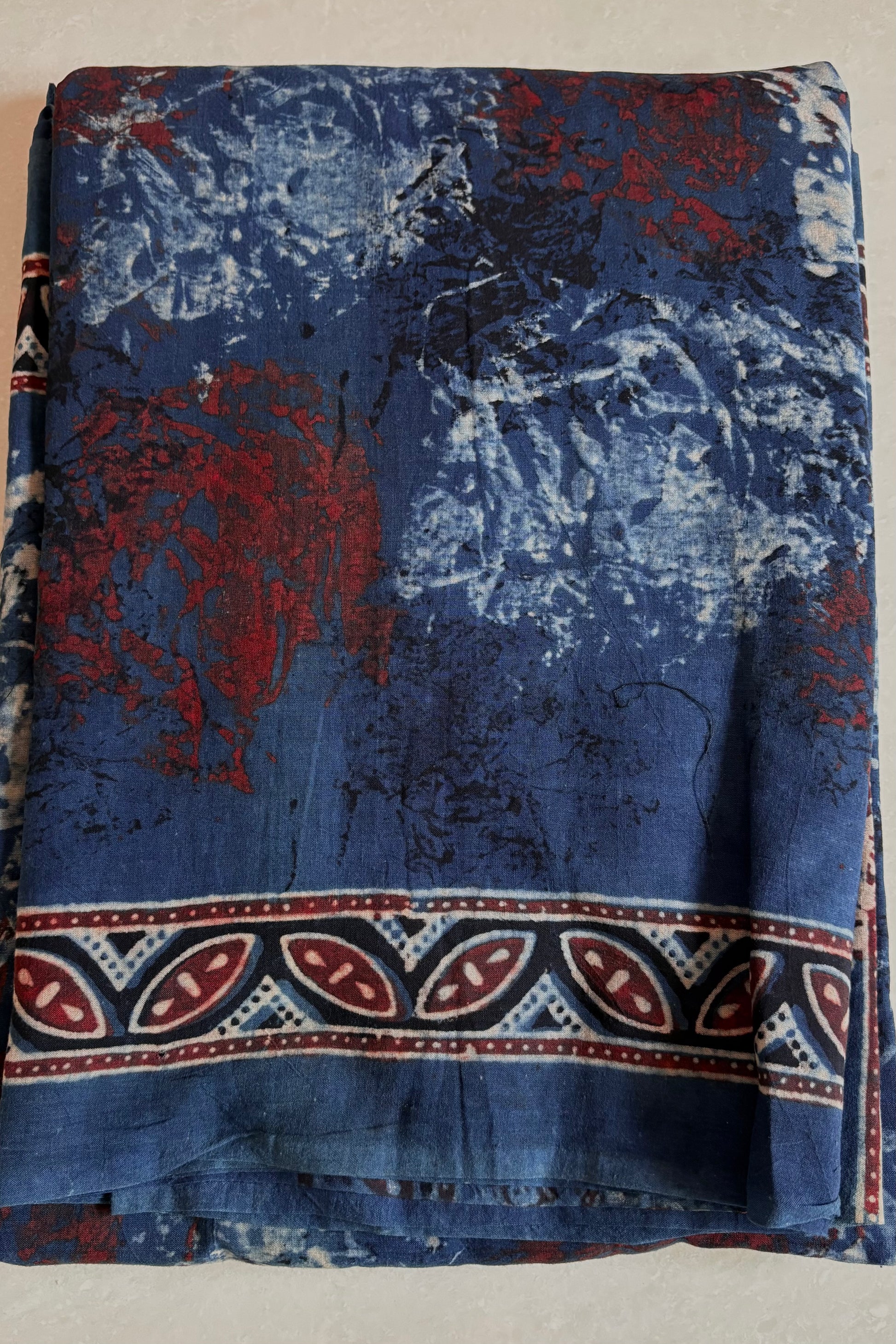 Ajrakh Natural Dye Hand Block Print Pure Cotton Saree