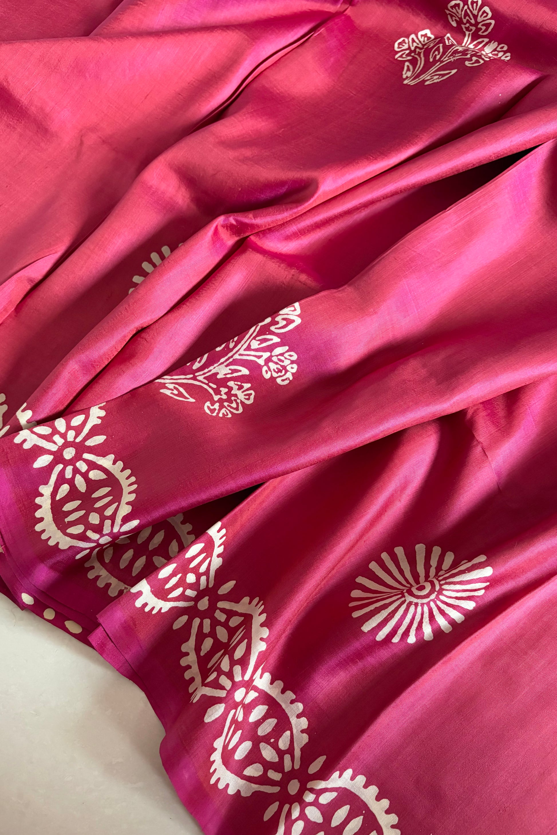 Bishnupuri Pure Katan Silk Saree Hand Block Print - Shot Pink