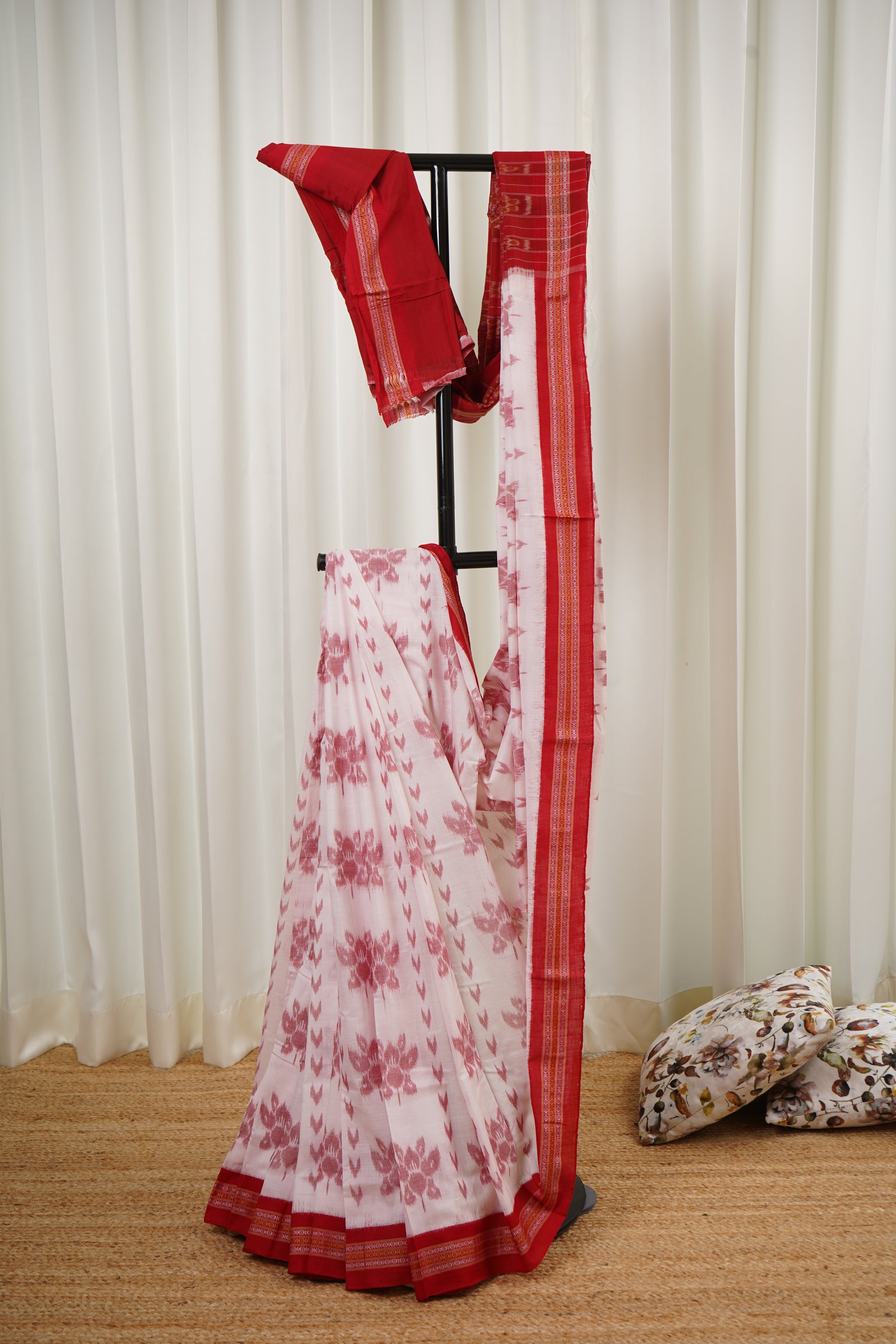 Exclusive Odisha Ikkat Khandua Cotton Saree - White Red | Handwoven