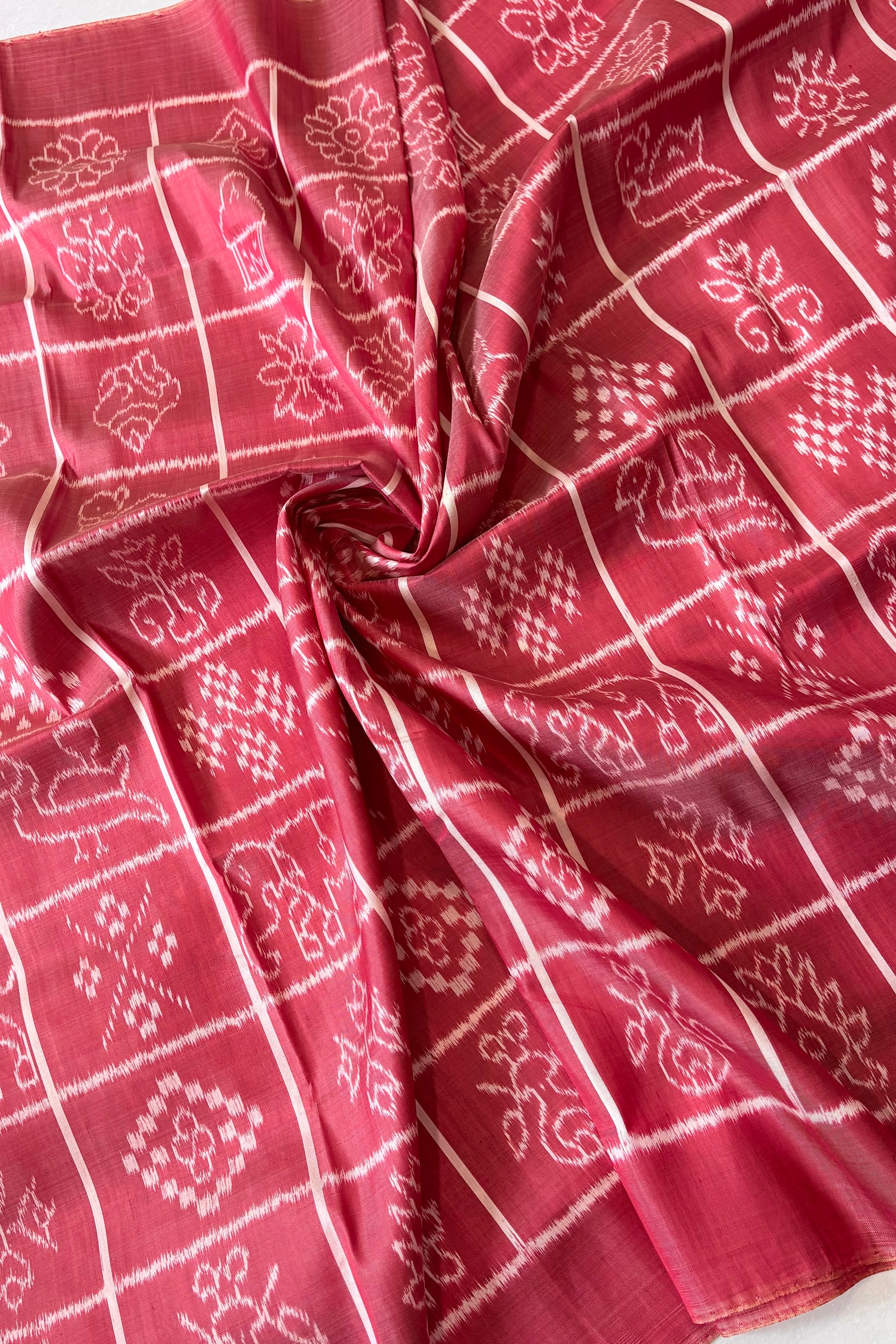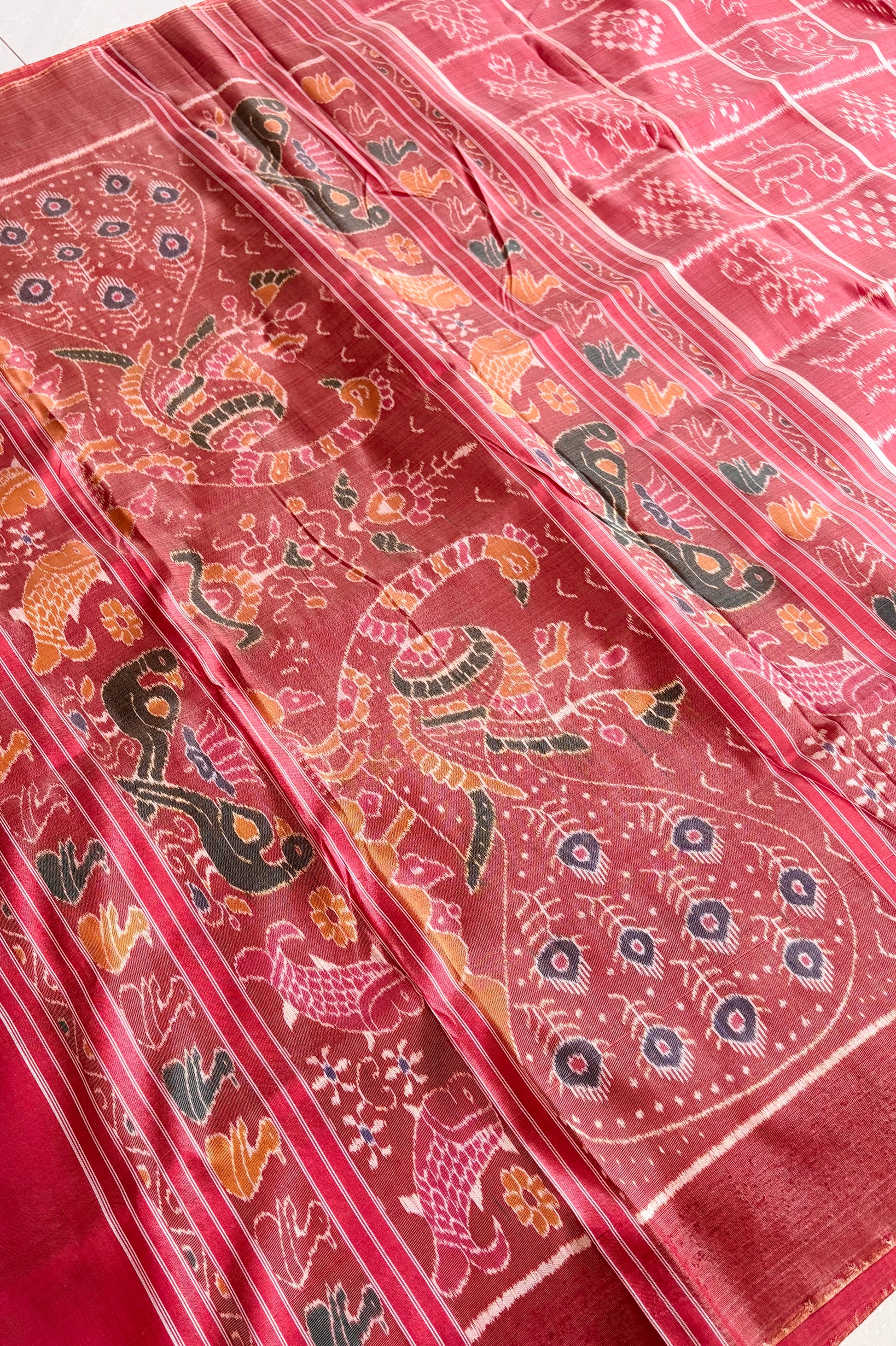 Exclusive Odisha Ikkat Nabakothi Pure Silk Saree- Carrot Red