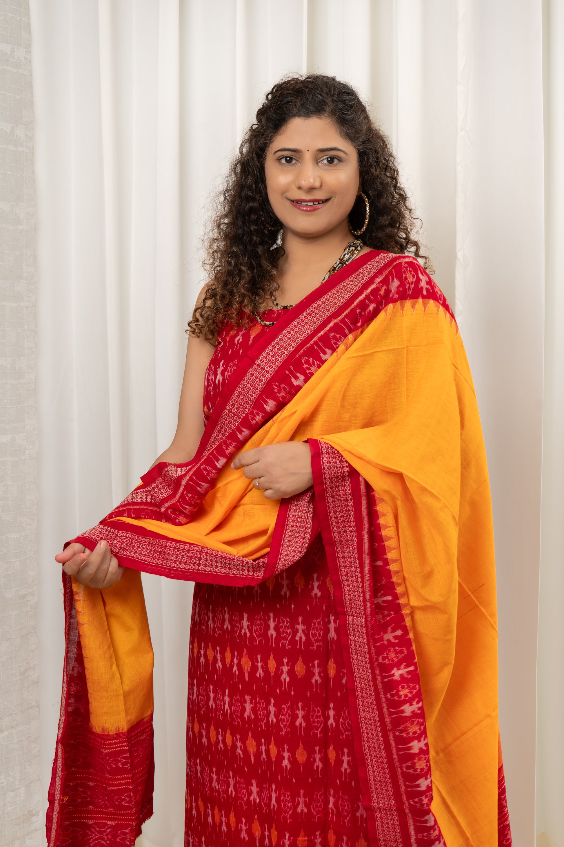 Pure Cotton Sambalpuri Ikkat 3 Piece Dress Material-Red