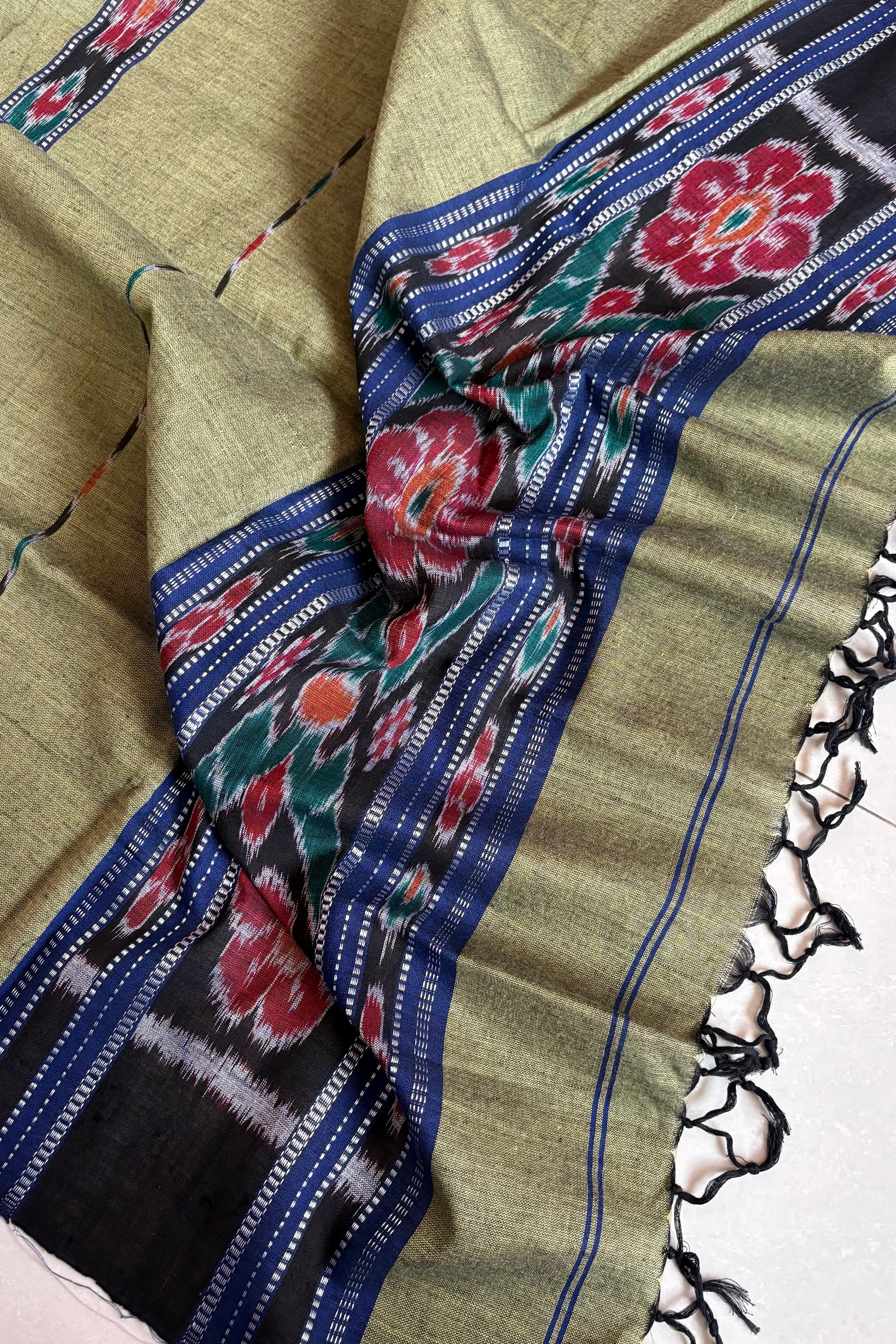 Odisha Ikkat Pure Cotton Stole-Olive Green