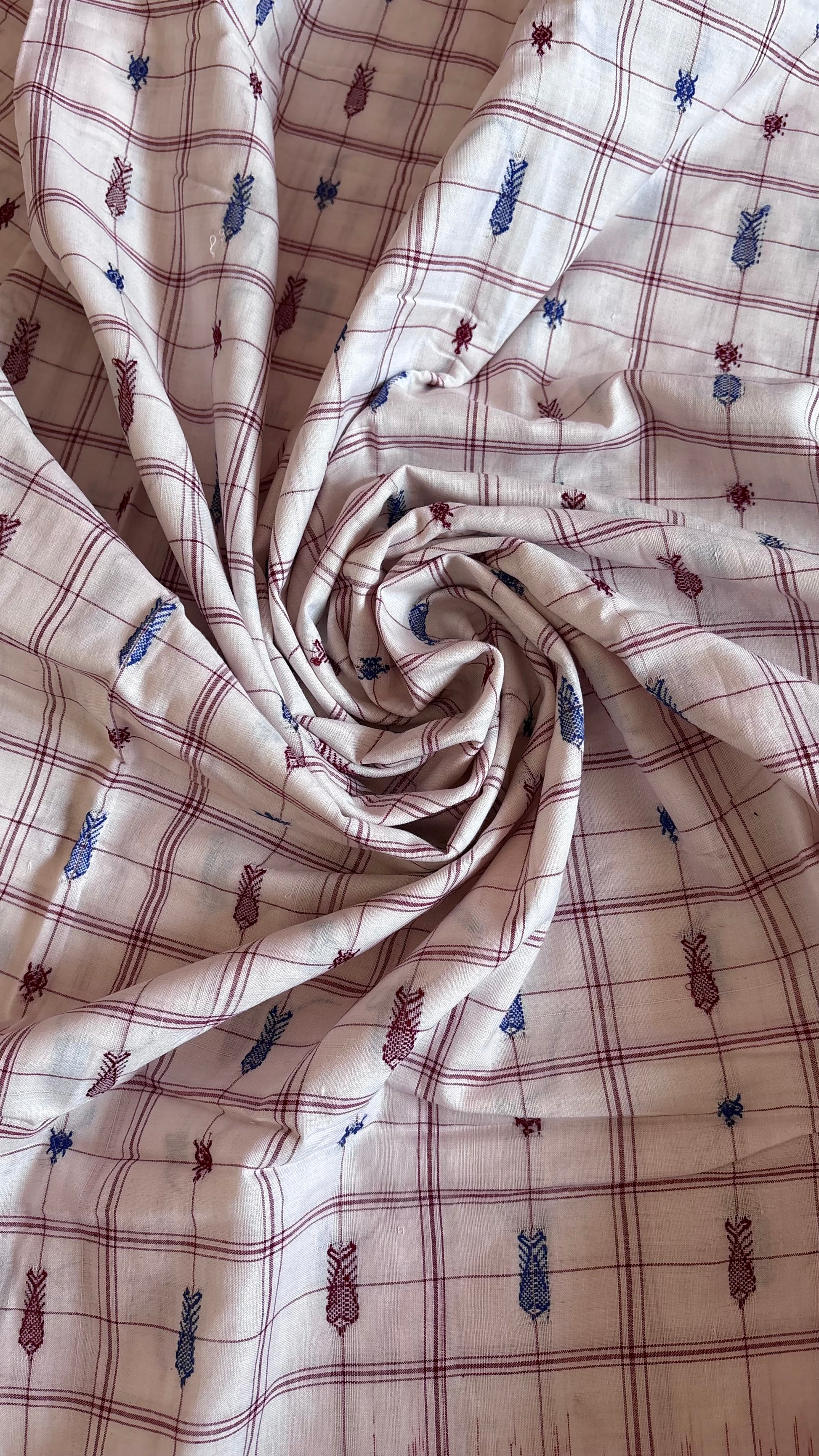 Exclusive Odisha Ikkat Hazaar Buti Cotton Saree- White Maroon