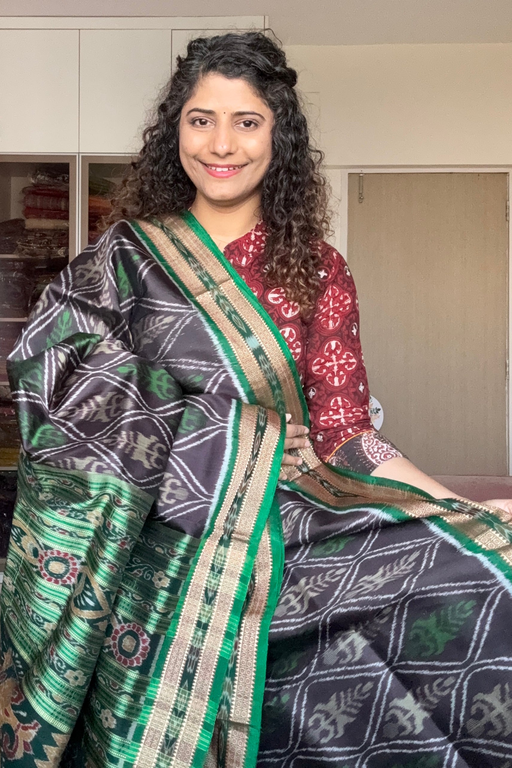 Exclusive Odisha Ikkat Pure Silk Saree- Coffee Brown
